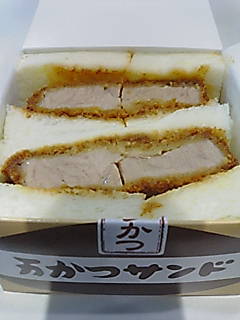 まずは、朝食です。先日、『まい泉』のヒレかつサンドをご紹介しましたが、この『肉の万世』の万かつサンドもうまいです!!