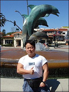 海岸沿いをしばらく歩き(さすがに寒いので泳いでいる人は1人もいないですねぇ。)ステートストリートとぶちあたるところに、イルカの像があります。サンタバーバラの象徴的な撮影スポットの1つでしょうか・・・。