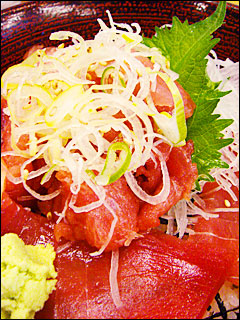 写真がそのときに食べた丼ですが、鉄火丼を注文したはずなのに、鉄火ねぎとろ丼が・・・