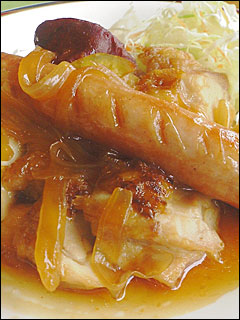 上の写真はからっと揚がったシュリンプフライ(右)にエッグロール(左)です。